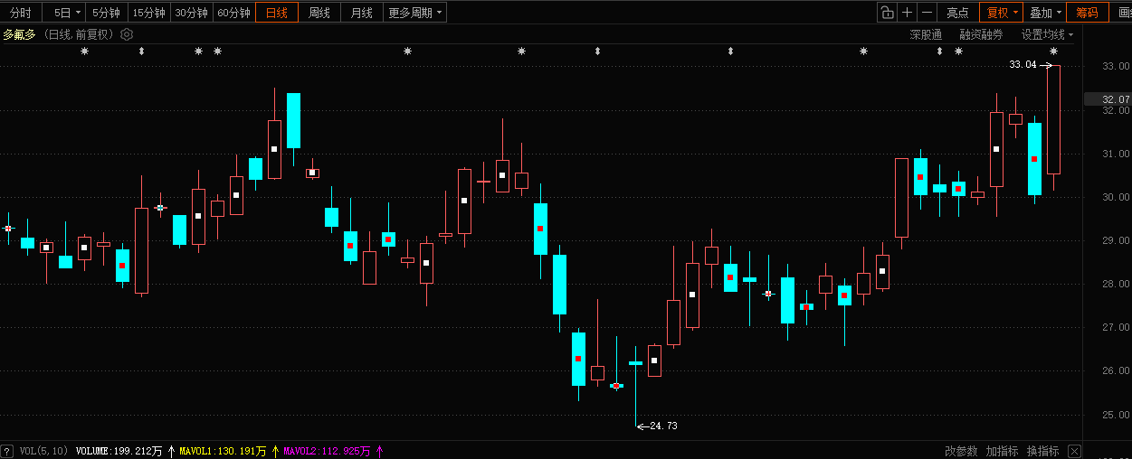 $多氟多(SZ002407)$基础化工及新能源材料方向受季报业绩爆发验证,短期在震荡市中扮演避风港角色。股价大概率在涨停价附近展开强势整理,通过1-2个交易日的换手洗筹为后续走势蓄势,若回踩可参考30.00元整数支撑位,看防守力度,主力若续接力度不足,则很容易被解套盘打压。日线MACD在零轴上方强势金叉发散,均线系统呈全多头排列,中期上升逻辑不变。