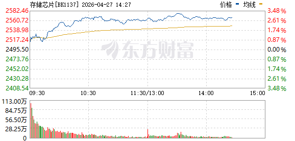 4月27日早盘,存储芯片板块震荡走高,东芯股份、德龙激光、晶升股份涨超10%,千亿巨头北方华创、深南电路均涨超8%,澜起科技、江丰电子、英唐智控等多股均有明显拉升表现。