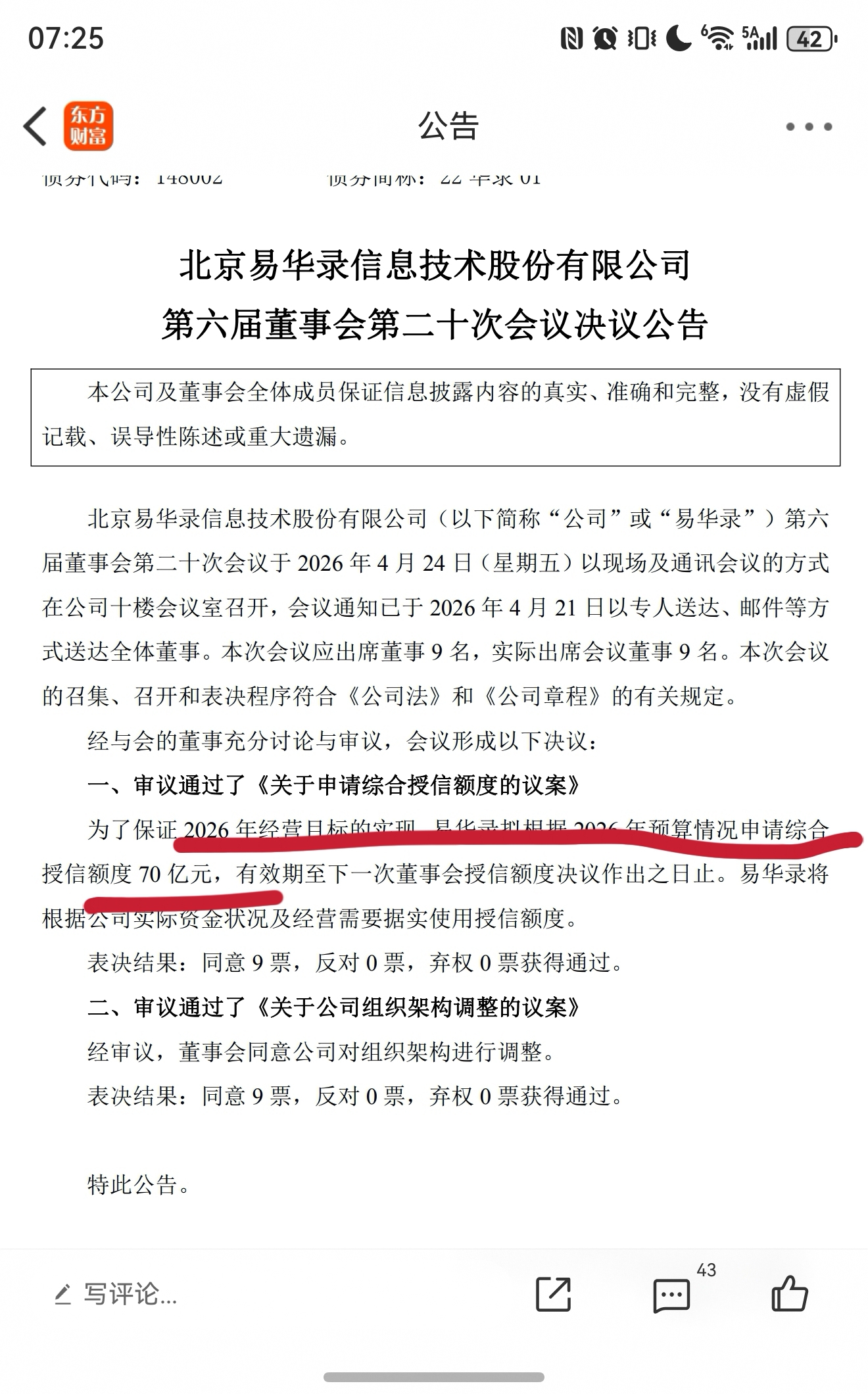 其中,4月24日晚间,公布的易华录第六届董事会第二十次会议决议公告,审议通过了《关于申请综合授信额度的议案》以及《关于公司组织架构调整的议案》就是保壳的信号弹!供销大集20月均线(89周均线)就是主力的生命线!2022年11月所对应的20月均线1.12元上穿60月均线1.09元、2023年7月所对应的60月均线1.03元巧合与当月最低价1.06元几乎吻合,2024年9月所对应的20月均线1.57元上穿120月均线1.56元,以及上月所对应的60月均线1.72元上穿120月均线1.71元,进而目前所对应的20月均线2.50元、60月均线1.73元、120月均线1.71元已形成了多头排列,这无疑标志着牛熊分水岭的临界拐点!清明节前最后一个交易日即4月3日晚间公布了供销大集关于参与竞拍国投农产品供应链(北京)有限公司60%股权进展的公告,强调为保护公司及全体股东的利益,公司已聘请符合《证券法》规定的机构对标的公司进行审计、评估,相关工作正在有序推进中。国投农产品所在行业为粮食和农产品贸易,对我国粮食安全具有重要作用,行业处于需求上升发展期。并且,国投农产品在粮食和农产品贸易领域具有一定的核心竞争力和市场地位。如竞拍成功完成收购,国投农产品将成为供销大集的控股子公司,纳入公司合并报表范围,公司将承接国投农产品的优质客户、嫁接供应商渠道资源,利用国投农产品人员团队优势,巩固发展商品贸易板块业务,补齐短板,快速提升公司营业收入规模。无独有偶,近日,在海口举办的第六届中国国际消费品博览会上,供销大集先后与海南省财金集团有限公司、海南联合资产管理有限公司签署战略合作协议。抢抓自贸港封关后首届消博会机遇,深挖优质资源、深化战略合作,标志着供销大集在全面布局海南、强化资源协同方面迈出坚实一步。叠加3月12日,中国供销商贸流通集团公司与中国食品有限公司在京举行战略合作协议签署仪式。中华全国供销合作总社党组成员、理事会副主任徐光洪,中粮集团党组成员、副总经理,中国食品有限公司非执行董事、董事会主席庆立军出席签约仪式并讲话,中国供销集团党委副书记、总经理郝彦领主持仪式。以及4月17日,中国供销集团有限公司与中粮集团有限公司签署战略合作框架协议。总社党组书记、理事会主任王宇燕与中粮集团党组书记、董事长李国强出席签约仪式并就双方加强合作进行会谈。总社党组成员、理事会副主任张梅林,总社党组成员、理事会副主任徐光洪,中粮集团党组成员、总会计师叶慧青,中粮集团党组成员、副总经理朱来宾见证签约。中国供销集团党委副书记、总经理郝彦领,中粮集团党组成员、副总经理陈刚代表双方签署协议。统筹布局,发展蓝图。等等,不胜枚举。缺口必补,特指向下缺口(沪指历史上共43个向上跳空缺口以及共4个向下跳空缺口未补,供销大集历史上共2个向上跳空缺口以及3个向下跳空缺口未补。),波浪理论,仁者见仁,智者见智(供销大集月线已完成了经典波浪理论的5浪驱动浪与3浪调整浪,即2021年2月至2024年12月为5浪驱动浪,2024年12月至本月为3浪调整浪。),今日(4月27日)最低价1.73元已刷新了自从2024年9月20日近1年7个多月以来的新低,即完全抹去了“9.24”牛市行情以来的涨幅,并且其也巧合与月线三线合一几乎吻合(60月线、120月线、月线下压线的平行线),历史大底呼之欲出!节后启动,蓄势待发!王者归来,指日可待!胸有成竹,稳操左券!不获全胜,决不收兵!本人管见,谨供参考。】!![加油 [加油]](http://gbfek.dfcfw.com/face/emot_default_28x28/emot12.png)