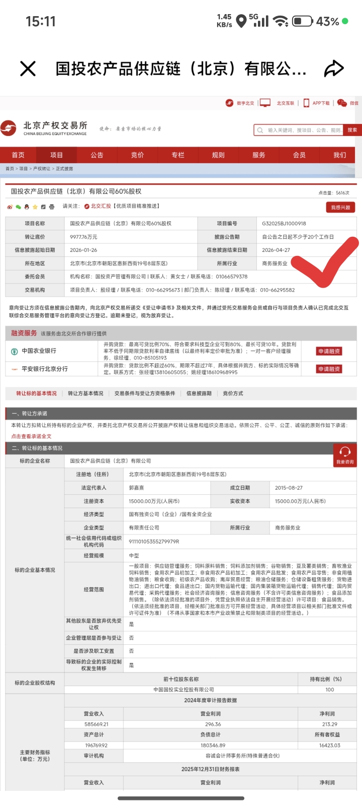 资料显示,国投农产品是一家成立于2015年的国有控股企业,隶属于国家开发投资集团有限公司,主营供应链管理、农产品初加工、农产品贸易及进出口业务等。据2025年未经审计数据,2025年,国投农产品实现营业收入5.47亿元;同期实现净利润963.68万元,较2024年的213.29万元净利润大幅提升,具备一定的行业地位与市场竞争力。