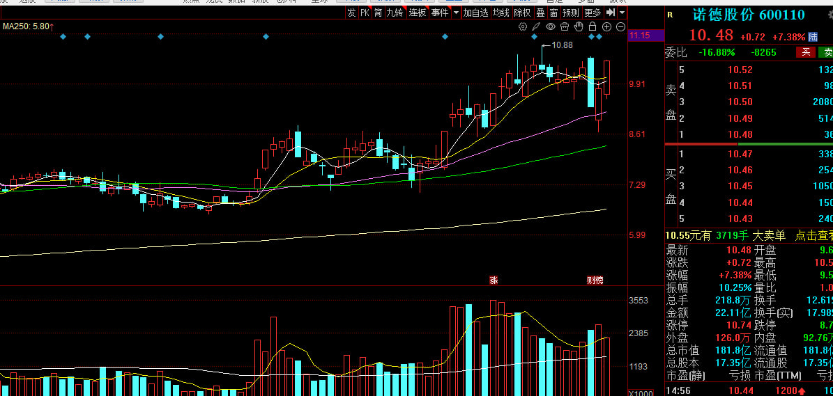 $诺德股份(SH600110)$:公司是全球锂电铜箔领域领军企业,最近两个交易日的走势还是比较强的,昨天放量突破了五日和十日线的压力,短中期趋势都开始转强,今天依然还是继续看好的,市场中如果能有较好的接力,红三兵还是可以期待的。昨天突破也是突破了10快的压力位,今天如果能够突破前期10.88的压力位,上升空间打开,这周还有三个交易日有接力还是有望站上12的,现在筹码也是比较集中,节前最后三个交易日还是值得重点期待的。