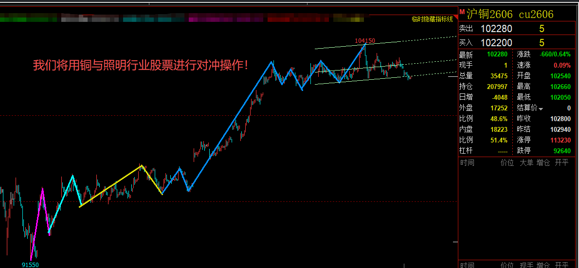 我们将用铜和镍及碳酸锂、烧碱等(新能源电池原材料)与照明行业一个篮子股票做对冲完成节前的风控操作!