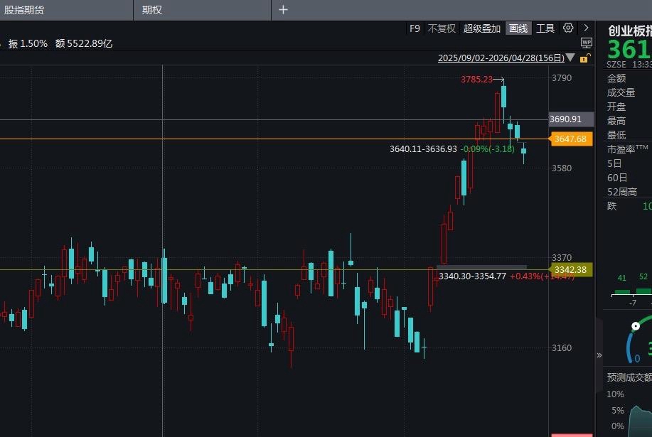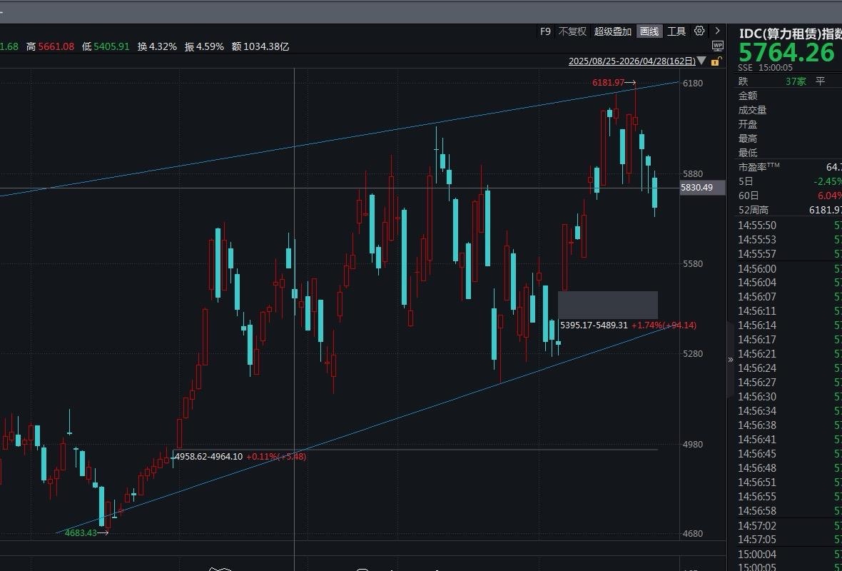 技术面我再重申一遍,昨天已经讲得明明白白:创业板短期顶部已经彻底成型,不是短期小调整,这一轮调整周期,起码要贯穿整个五月份,时间换空间慢慢磨底。下方关键支撑直接看3342附近缺口位置,回踩到位、放量企稳之前,没有任何重仓博弈价值。现在谁着急抄底、谁着急加仓,谁就是被动站岗,白白被套在半山腰。算力板块也无需过赘述,在4.23有粉丝在评论区公开说现在是算力板块的主升的时候,我就做出判断,算力谨防压力位的冲高回落,短期需要回调!大家可以去看之前的复盘。