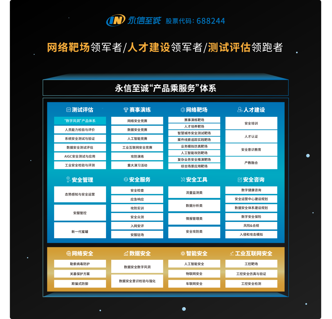 2026年4月29日,数字安全测试评估赛道领跑者、网络靶场和人才建设领军者、AI「原生安全」倡导者永信至诚发布2025年年度报告及2026年一季度报告。报告期内,公司AI相关业务加速从技术验证走向规模化落地,AI相关产品和服务收入成为公司重要的收入增长引擎。