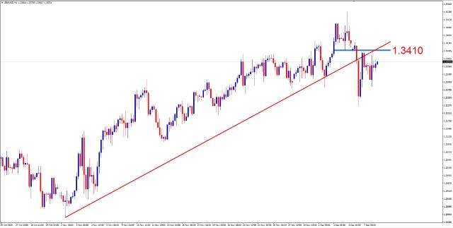 价格处于调整运行,投资者可考虑关注1.3410附近做空,止损1.3500左右,目标1.3300左右。