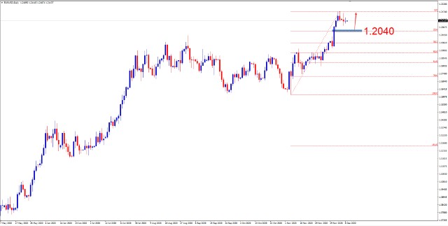 价格拉升后的调整,投资者可考虑关注1.2040附近做多,止损1.1980左右,目标1.2150左右。